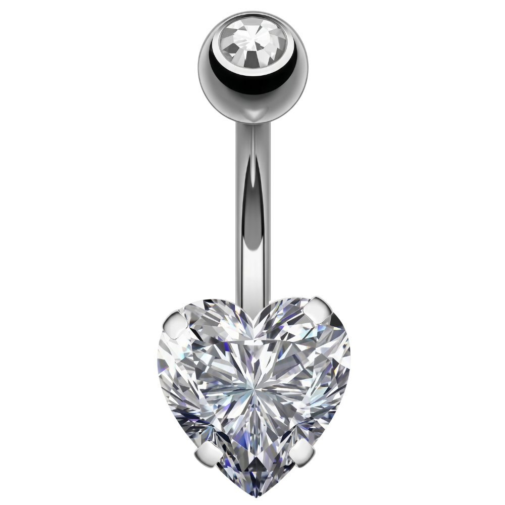 Stalowy Kolczyk Do Pępka - Cyrkonia w Kształcie Serca