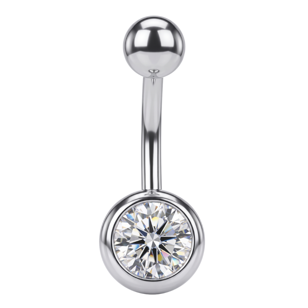 Postaw na ponadczasową elegancję z klasycznym kolczykiem do pępka typu Banan. Ten model łączy w sobie prostotę gładkiej, polerowanej kuleczki z efektownym blaskiem dużej, centralnie osadzonej cyrkonii. Oprawa nie tylko bezpiecznie trzyma kamień, ale także nadaje mu nowoczesny, biżuteryjny wygląd, który idealnie odbija światło przy każdym ruchu.